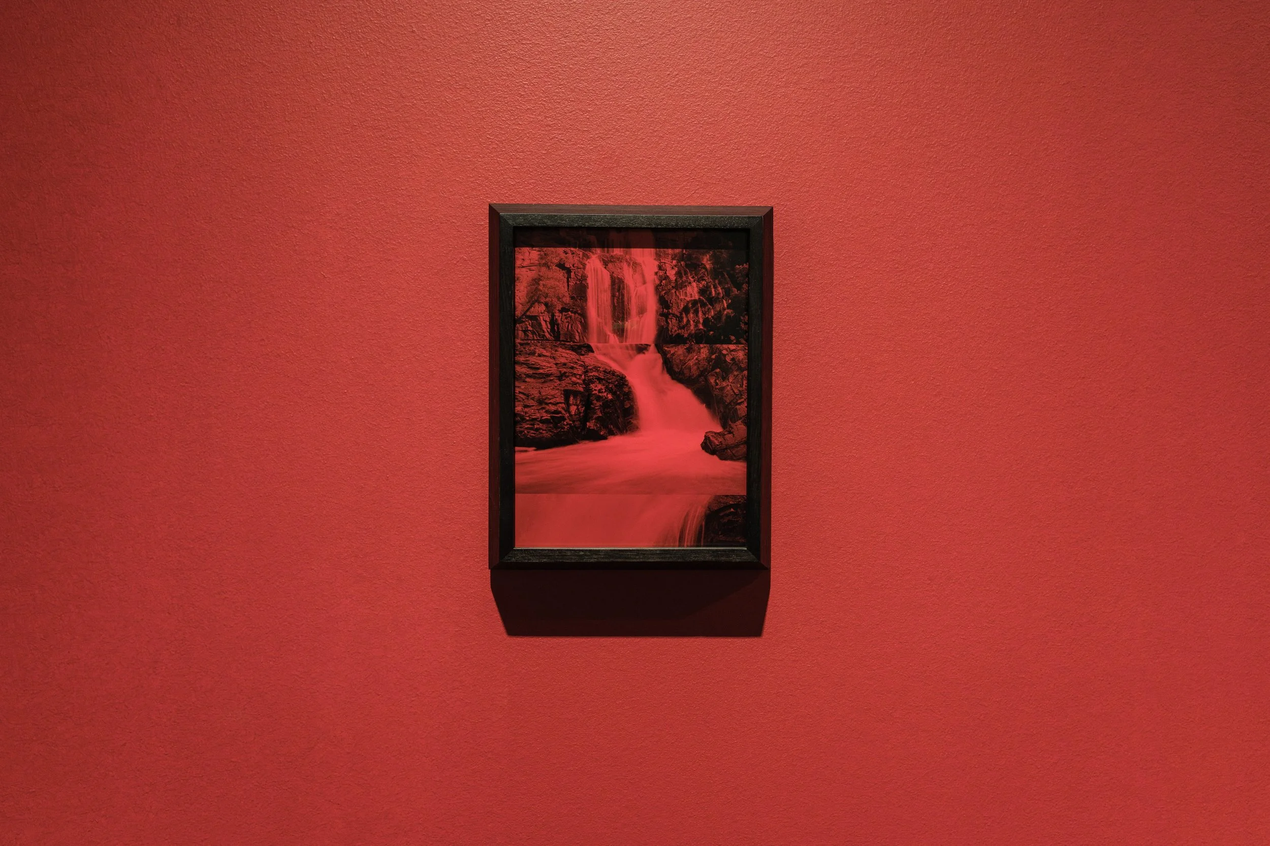 While each collage in this series suggests a unified, continuous landscape, it is in fact assembled from distinct locations, with no place appearing twice within a single image. I dressed each portal with shades of unforgettable and unforgivable red, symbolising the duality of violence and passion, corruption and yearning—a visceral terror and love that sits uncomfortably close. The works remind me of both bloodshed and the blood coursing through my veins, connecting me to the Indigenous continuum, both materially and psychologically, enduring beyond the designs of colonial power. Only now that I have decided these will be artworks, and this series is complete, have I come to understand that what I was seeking was solace, which I find in all the breaks in the sunder. This piecemeal fragmentation and the final, finished outcome are both wound and opening.